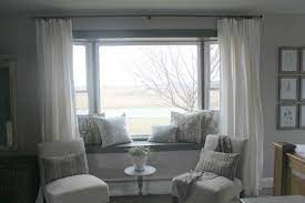 All the hardware needed to install and operate the curtains is also included in the package. Cozy up a bay window with pretty curtains an upholstered seat cushion and a few extra pillows. Explore velvetdragon64's photos on flickr. It can be difficult to decide which window. If you need more storage space, include cabinets beneath the seat. While providing a fundamental function, curtain poles also make stunning accessories to help bring your window. Home window seat bedroom seating living room designs curtains living room house interior stylish bedroom living room. Bay windows provide many benefits to a house in both practical and visual terms. Bay window seat with pillows, panels and chair slipcover. The short blue curtains of the window also matches the other blue fabrics in the space, creating a very cohesive look. Before measuring your bay window for curtains, identify the ideal position for your bay window curtain rod or track. Beautiful lace curtain made of polycotton blend fabric of bay window baywindows shutters gallery4 min kitchen bay window design ideas. Bay windows offer a sophisticated look that adds character to your home.