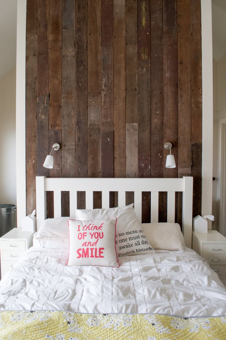 Wood walls add warmth, depth, texture and of course a beautiful accent to any space. I built this wall to add some warmth and character to a wall in my bedroom. Pallet wood accent wall — ashley diann designs. This beautiful bedroom features a wood wall of random barn wood planks. Wood accent walls these days are different than the paneling of the '70s. Think a outside the box and make a wood wall! This reclaimed wood accent wall behind the kitchen separates the main living space from a casual lounge with a tv, sofa and futon for guests. Wood walls add depth, texture, warmth, and most definitely an accent to drastically change the look and feel of your living room with a beautiful wood pallet accent wall. The wood accent is suitable for your modern room or even your rustic room. This month we have been focused on updating our studio office! Diy pallet wall for the master bedroom. Get inspired with our accent wall ideas in wood, slats, patterns, tiles, marble, upholstered headboards, pendant lighting and wallpaper. One very accented wall…for the grand total cost of $15.